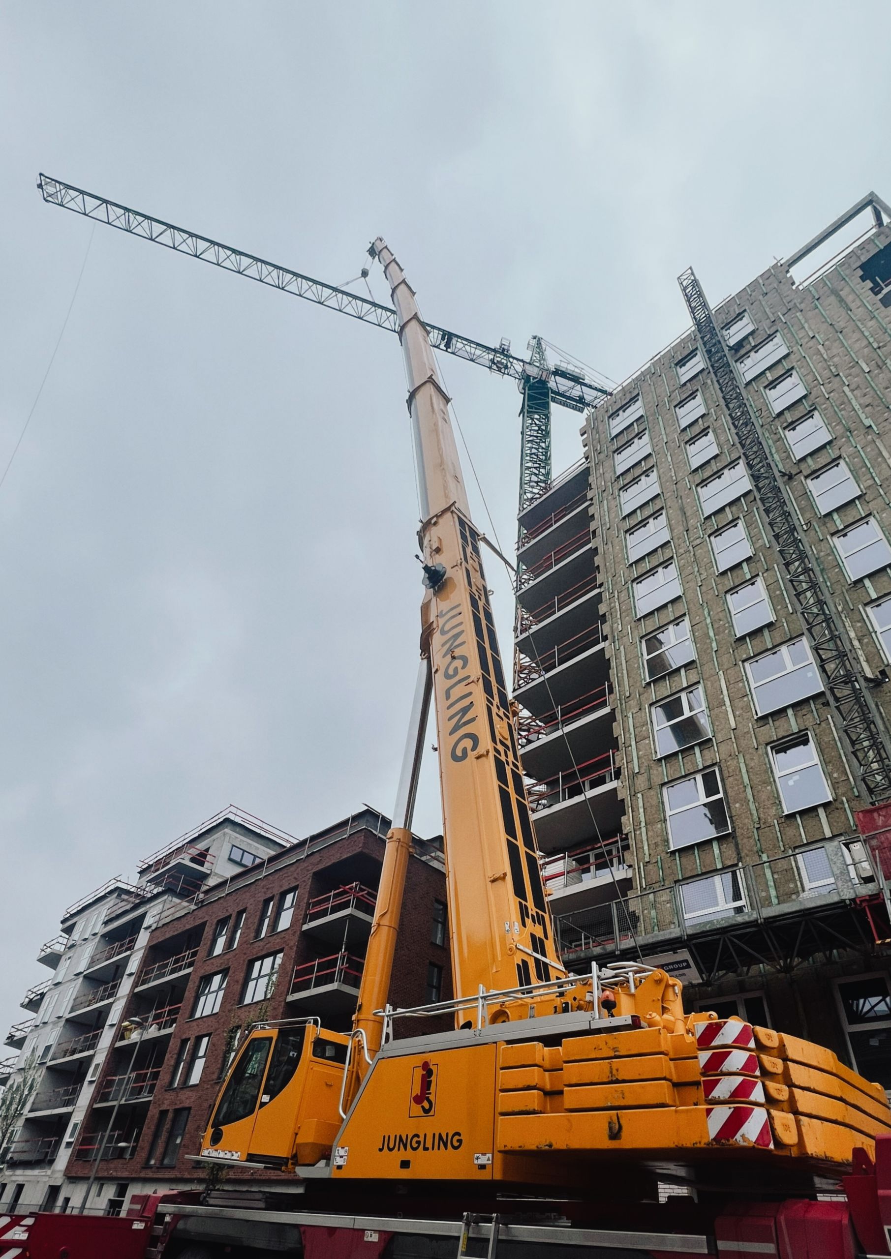 Les entreprises telles que Van der Spek, Uperion, Verhelst, et plus récemment Neremat, font régulièrement appel à Jungling pour un besoin spécifique : mobiliser une grue mobile pour assembler ou démonter leurs grues à tour sur différents chantiers de construction.
